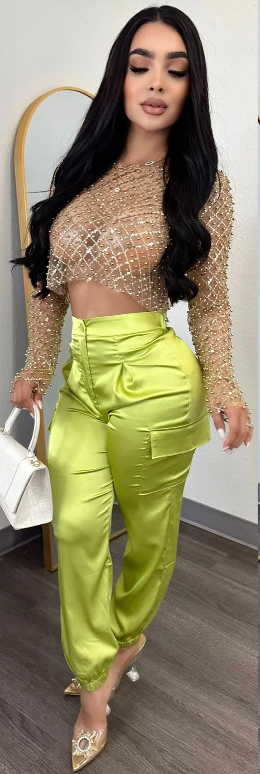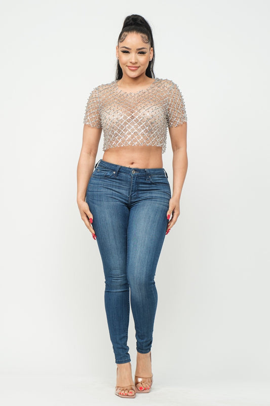 Eva Gold Mesh Pearl & Sequin Crop Top